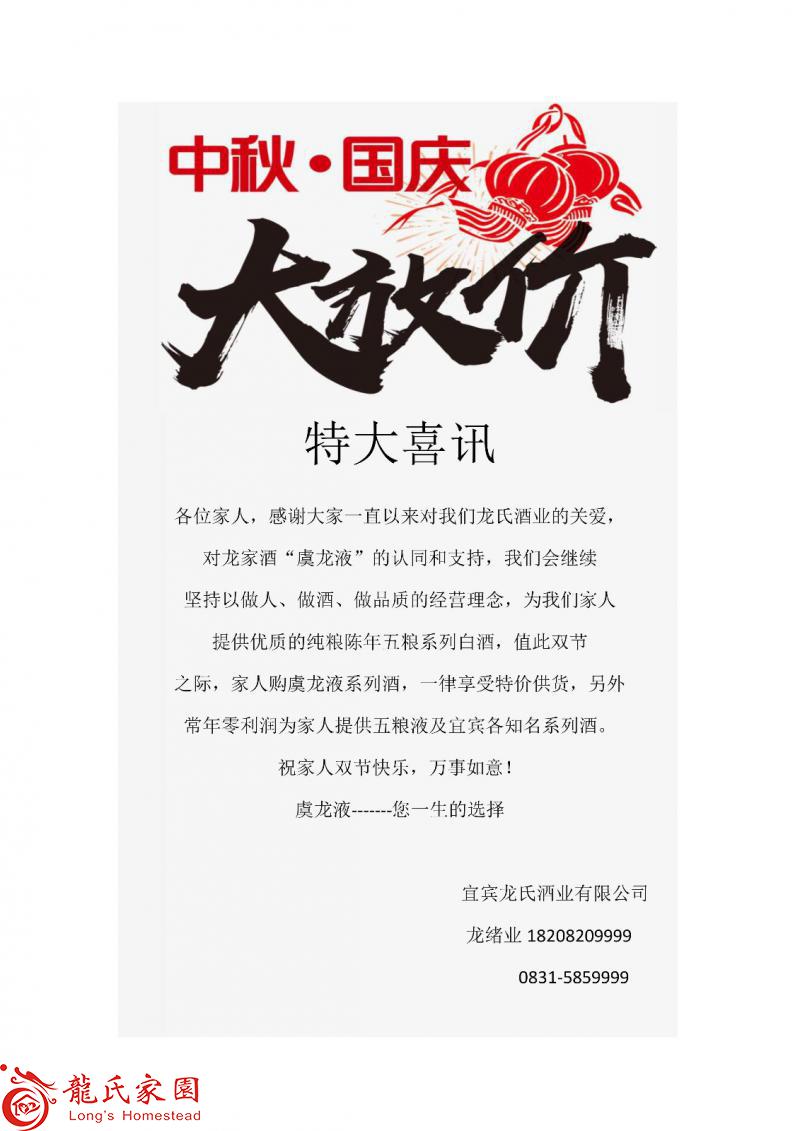 虞龙液·双节回馈大促销!