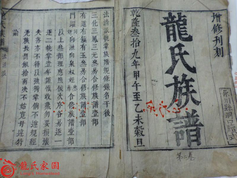 重庆市永川区龙氏琳派老族谱第二卷(荣昌区龙芳元提供)