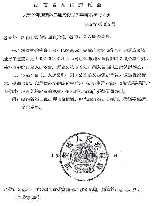 湖南省人委会关于伯高墓列入省文物保护的通知